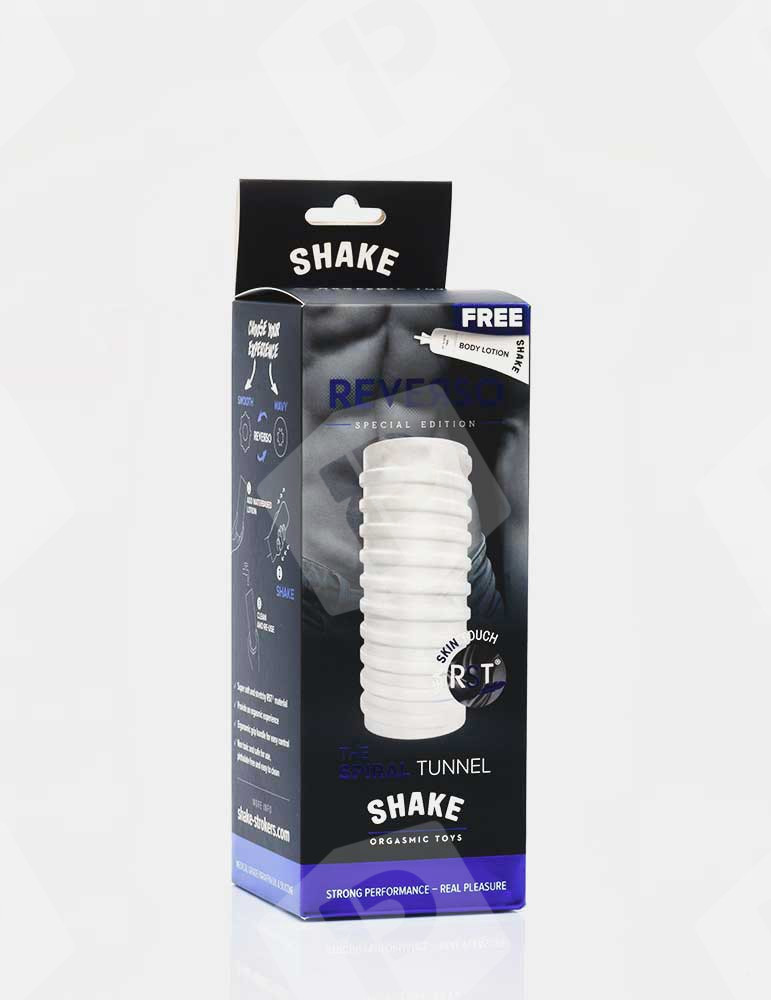 Masturbator Spiral Tunnel marki Shake. Spróbuj przyjemności spirali z tym całkowicie unikalnym i przezroczystym masturbatorem. Wyprodukowane z materiałów wysokiej jakości, Twoja zabawka erotyczna jest bezpieczna dla zdrowia. Do Ciebie należy urozmaicanie przyjemności i rozwijanie doznań w solo dzięki temu, że jest odwracalny. Z jednej strony wybierz mocne doznania z licznymi spiralami na całej długości, z drugiej zdecyduj się na delikatniejszą masturbację z gładkim tunelem. Radzimy używać lubrykantu na bazie wody, aby nie pogorszyć jakości Twojej zabawki. Dostępne są inne kolory: cielisty i czarny. Twój masturbator można myć wodą, dla nieskończonego użytku i unikalnych doznań!