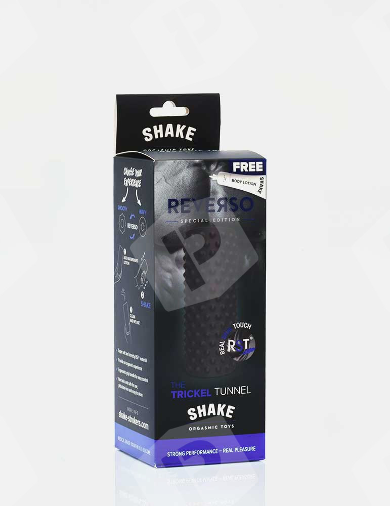 Masturbator męski Trickel Tunnel marki Shake z pewnością spełni Twoje oczekiwania! Delikatny, ale pikantny, ta czarna zabawka erotyczna dla mężczyzn jest wyjątkowa, ponieważ jest dwustronna. Twój penis będzie stymulowany przez wypustki podczas masturbacji z jednej strony, a gładkim i miękkim tunelem z drugiej. Bez ftalanów, ten masturbator jest bezpieczny dla Twojej skóry. Docenisz jego dotyk dzięki technologii Real Skin Touch, która zapewnia dodatkowy efekt realizmu podczas masturbacji. Ta zabawka ma 15 cm długości. Masturbator może być używany z lubrykantem na bazie wody, jednak darmowa dawka jest już dołączona. Wypróbuj i daj się przekonać masturbatorowi Trickel Tunnel Shake.