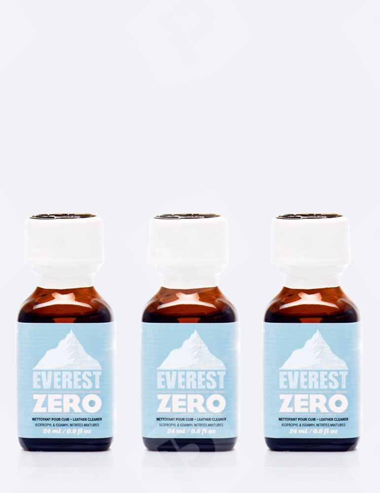 Everest Zéro 24 ml. Ten zestaw trzech fiolek po 24 ml jest wyprodukowany przez słynną francuską markę Everest Aromas. Ten aromat to mieszanka azotanów amylu i propylu. Butelki są wyposażone w megapellet: metalową kulkę do mieszania i przechowywania poppers! Oszczędzaj pieniądze z tym zestawem 3 Everest Zero.