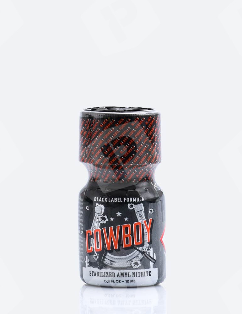 Poppers Cowboy Black Label 10 ml. Gotowy do wejścia w grę i pozwolenia się prowadzić... Ten poppers Cowboy jest wytwarzany z cząsteczką amylu, dlatego sprawi, że przeżyjesz potężne rodeo! Ta edycja Cowboy to formuła Black Label dla silniejszych i dłuższych efektów. Baw się z nim, gdzie chcesz, dzięki butelce poppers 10 ml, która sprawia, że jest łatwy do transportu.