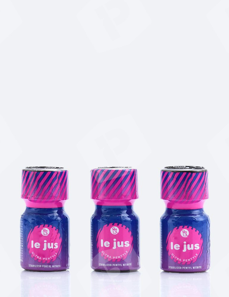 Trio Le Jus Poppers 10 ml. 3 fiolki dla trzykrotnie więcej przyjemności! Odkryj nasze trio poppers "Le Jus". Każdy z tych poppers ma swoją własną tożsamość: Le Jus Ultra Pentyle, Le Jus Super Propyle i Le Jus Amyle Base. Różne azotany dla mniej lub bardziej intensywnych efektów, według twoich pragnień i potrzeb. Używaj ich do intymności, w ciągu dnia lub...