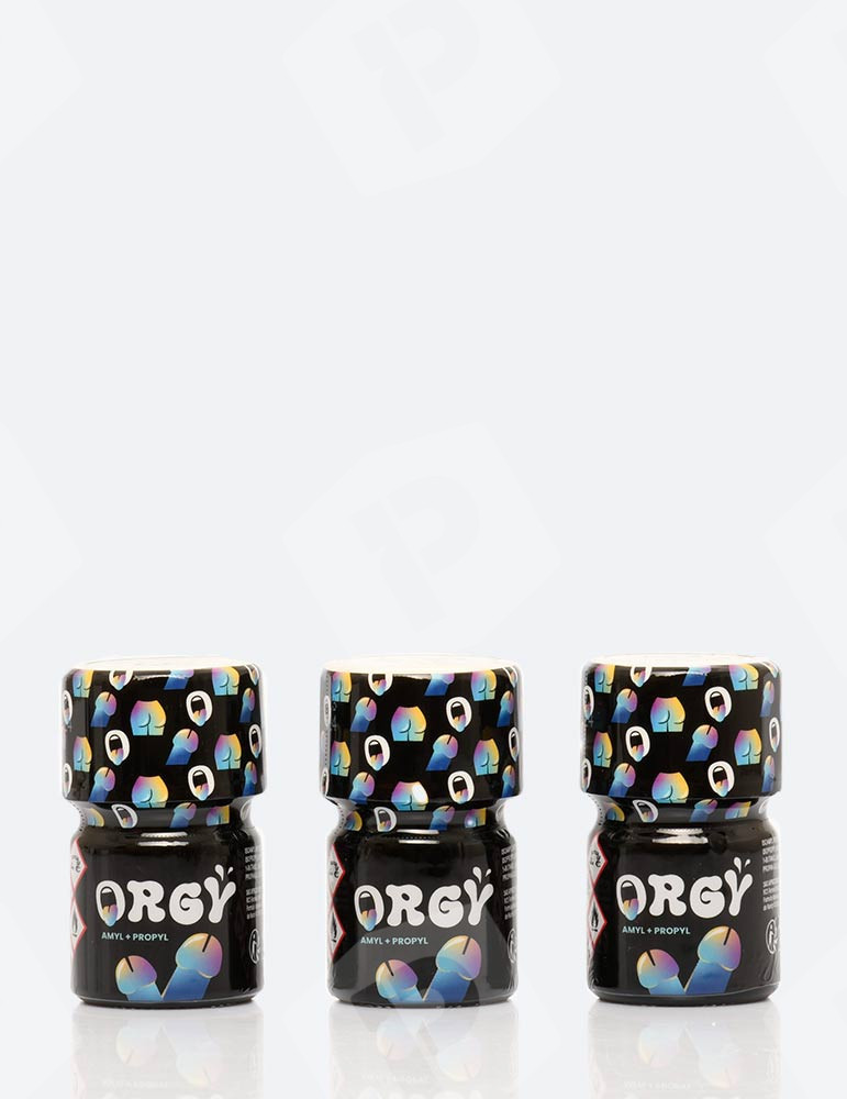 Poppers Orgy 15 ml x3. Design jego butelki nie pozostawia miejsca na dwuznaczność. Orgy Poppers wyraźnie ma swoje miejsce w Twoich intymnych sesjach solo lub z partnerem. Dzięki swojemu efektowi afrodyzjacznemu i rozszerzającemu naczynia krwionośne ciesz się gorącymi i intensywnymi nocami. Wynika to z jego szerszego otworu, który intensyfikuje rezultat. Mieszanka azotanów (amyl i propyl) odpowiada dla wszystkich.