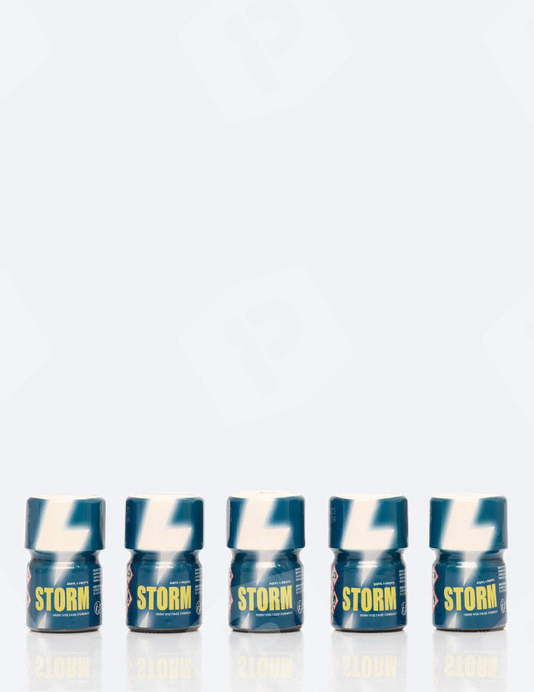 Poppers Storm 15 ml x5. Jak wskazuje butelka, ten poppers jest naprawdę "wysokiego napięcia"! Storm to nazwa tego poppers na bazie azotynów amylu i propylu. Na wieczór z przyjaciółmi lub w parze, ten poppers Cię zaskoczy. W przeciwieństwie do innych klasycznych poppers, ten poppers ma szersze otwarcie. Pozwala to zwielokrotnić efekt euforyczny i afrodyzjakowy.