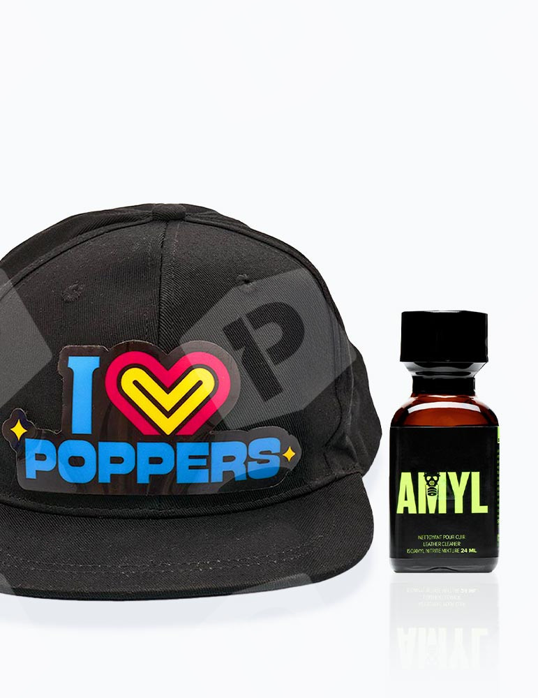 Zestaw Czapka LED "I LOVE POPPERS" + poppers Amyl 24 ml. Duet stworzony dla doświadczonych imprezowiczów: czapka LED do świecenia na imprezie i poppers Amyl 24 ml dla intensywnych i długotrwałych doznań.